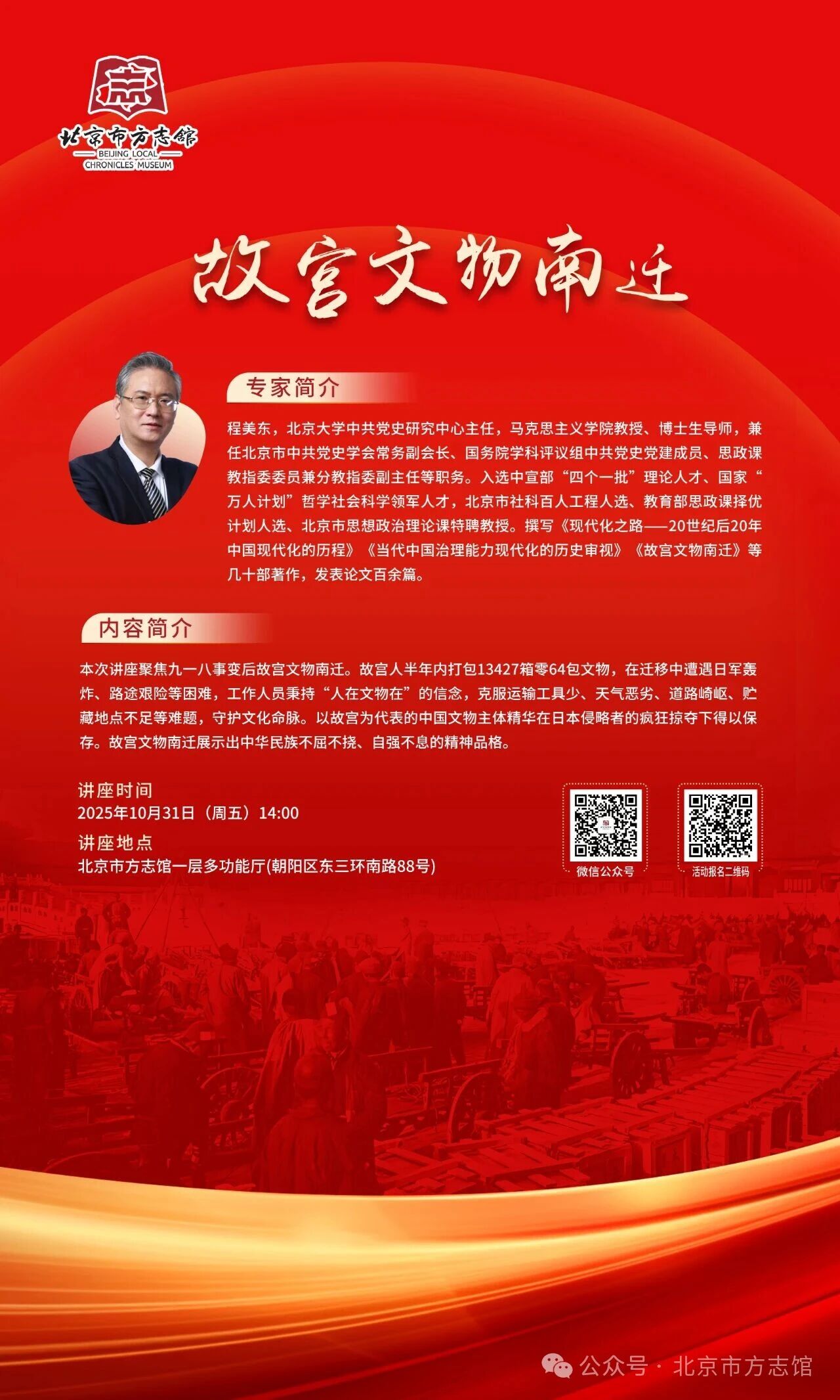 本次讲座聚焦九一八事变后故宫文物南迁。故宫人半年内打包13427箱零64包文物,在迁移中遭遇日军轰炸、路途艰险等困难,工作人员秉持“人在文物在”的信念,克服运输工具少、天气恶劣、道路崎岖、贮藏地点不足等难题,守护文化命脉。以故宫为代表的中国文物主体精华在日本侵略者的疯狂掠夺下得以保存。故宫文物南迁展示出中华民族不屈不挠、自强不息的精神品格。